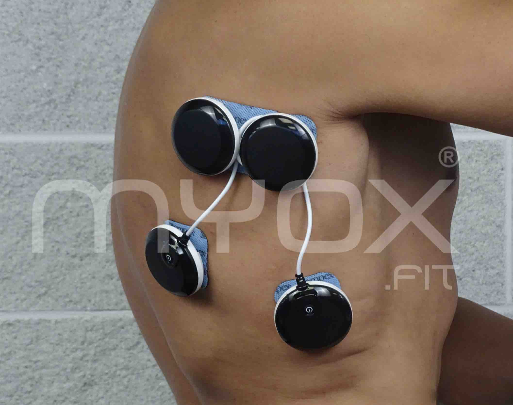 Tradicionalmente, los circuitos eléctricos se han cerrado con el polo positivo y negativo dentro del mismo vientre muscular, pero veréis en nuestra galería de colocación de electrodos que desde el Instituto Myox hemos ido más allá tras muchos años de estudio, y es que la electroestimulación también da muy buenos resultados cuando ponemos los electrodos con los polos positivo y negativo en diferentes músculos, es decir, colocación de electrodos intermuscular (se trata de un sistema desarrollado por Myox, marca reg.).
